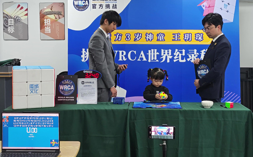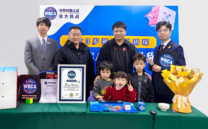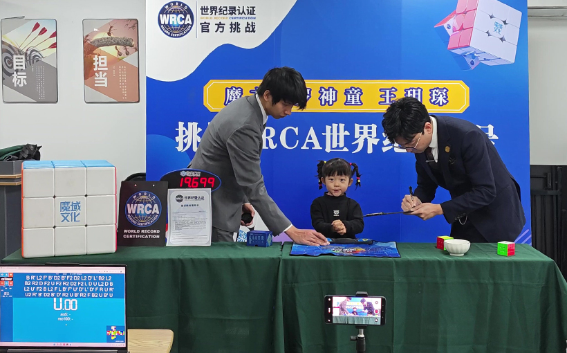Wang Yuechen (China, b. 8 April 2022) solved a 3×3×3 Rubik’s Cube in 19.699 seconds in Suzhou, China, on 15 March 2026. Verified by World Record Certification, Wang Yuechen successfully broke the world record for the “Youngest Person to Solve a 3×3×3 Rubik’s Cube in Under 20 Seconds”.