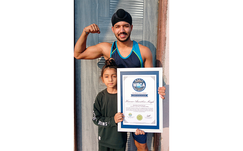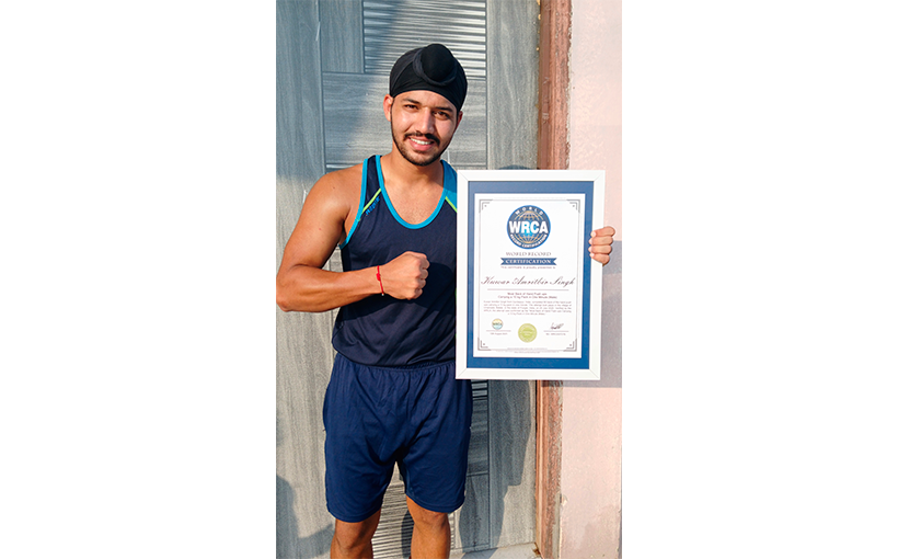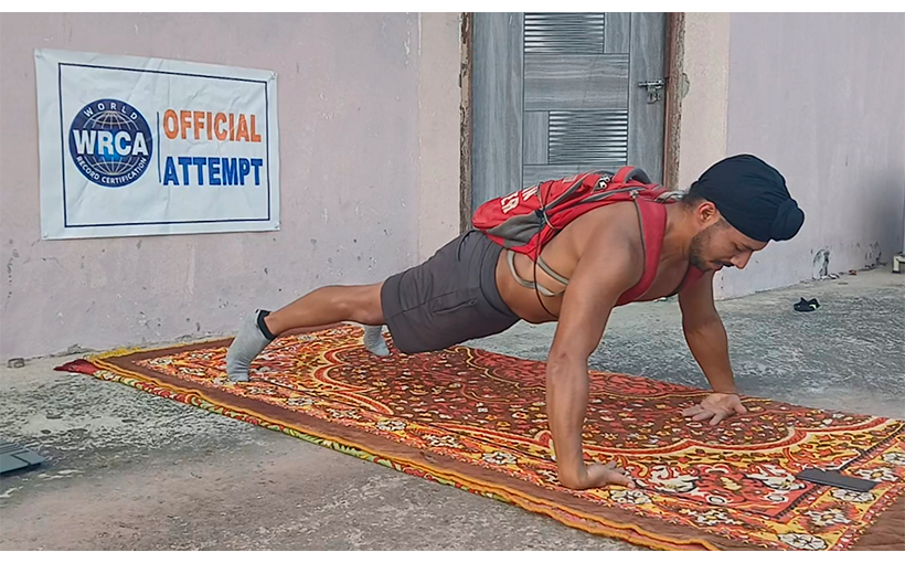 Kuwar Amritbir Singh from Gurdaspur, India, completed 80 back of the hand push ups carrying a 10 kg pack in one minute. The attempt took place in the village of Umarwala, Batala, in the state of Punjab, India, on 20 July 2025. Verified by the WRCA, the attempt was confirmed as the “Most Back of Hand Push ups Carrying a 10 kg Pack in One Minute (Male).”